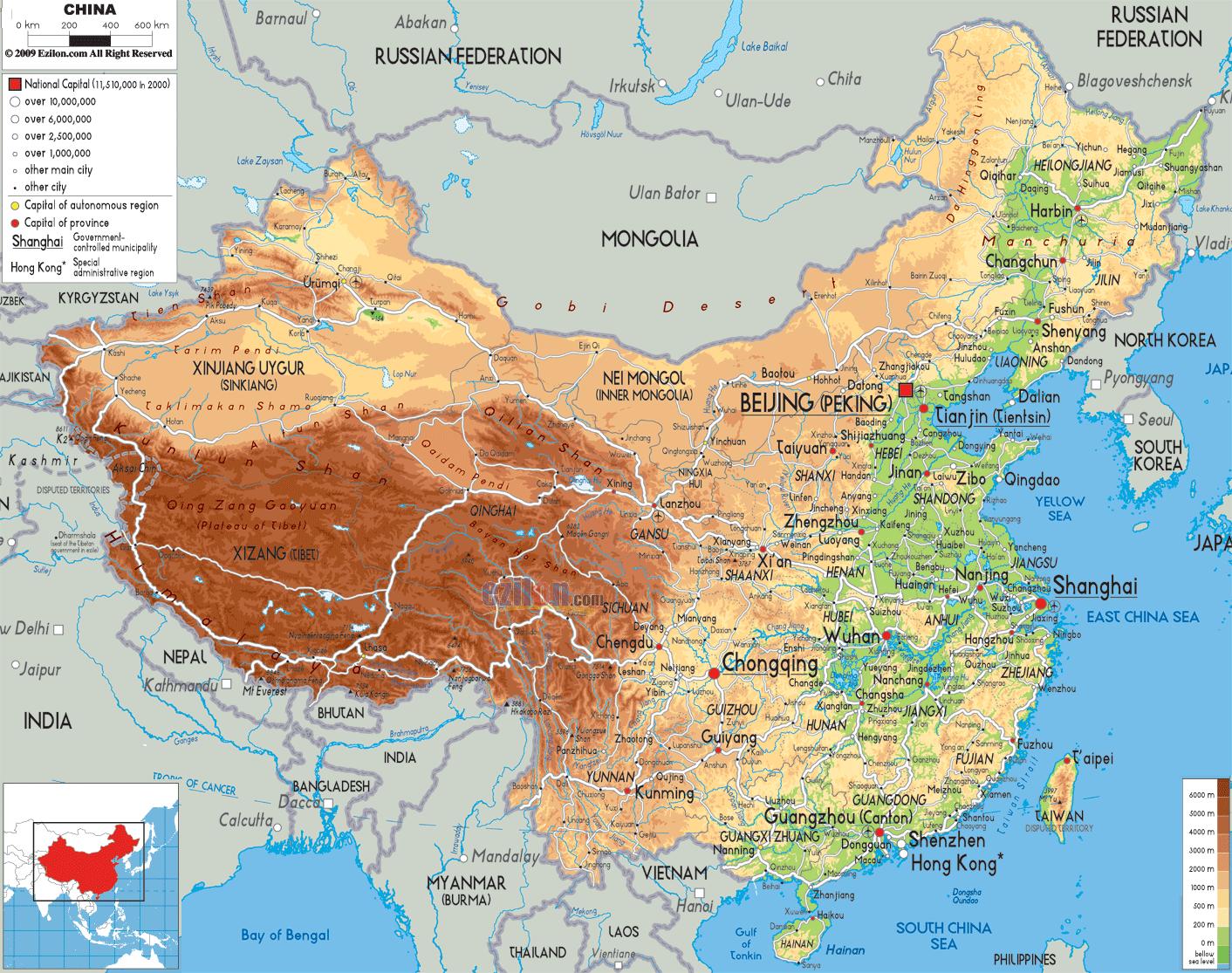 China sa mapa. Baba mapa (Silangang Asia - Asia) upang i-print. Baba mapa (Silangang Asia - Asia) upang i-download.